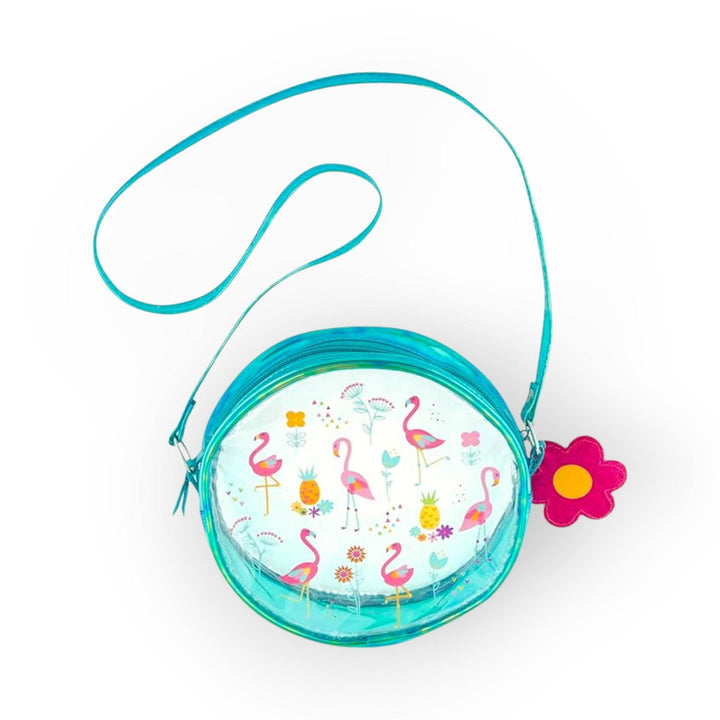 Stephen Joseph Clear/Iridescent Crossbody Purse Flamingo