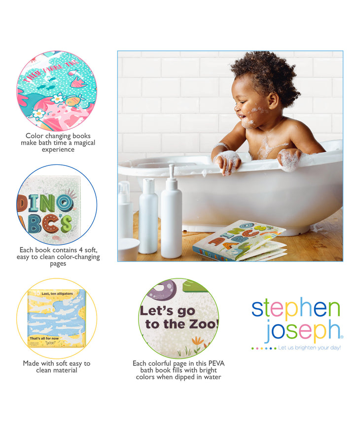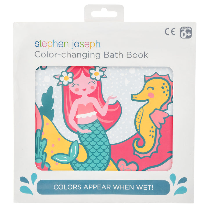 Splish-splash it’s time for a bath and floating, color changing books make bath time a magical experience! Each page in this PEVA bath book fills with bright colors when dipped in water. Read the adventures of mermaids and sharks in this soft bound book with quaint illustrations and colorful characters.