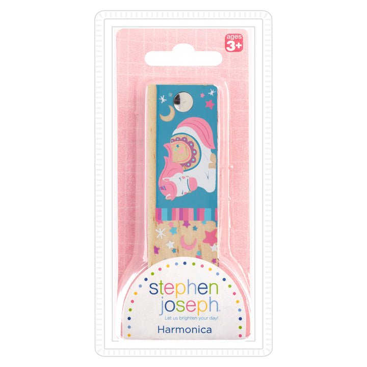 Musically talented or not, your child will love playing these Stephen Joseph Harmonicas. They’re the perfect size to keep in their pocket or Mom’s handbag for spontaneous music making, and they’re really easy for even little children to play – just blow and you’ve nailed it! And we don’t want to toot our own horns here, but we think the designs will blow your mind. Wooden and plastic harmonica. Colorful, hand-painted designs. Approx. 4”x 1” (10.1cm x 2.5cm). Wood and plastic. Packaged in blister pack. Wipe clean with damp cloth