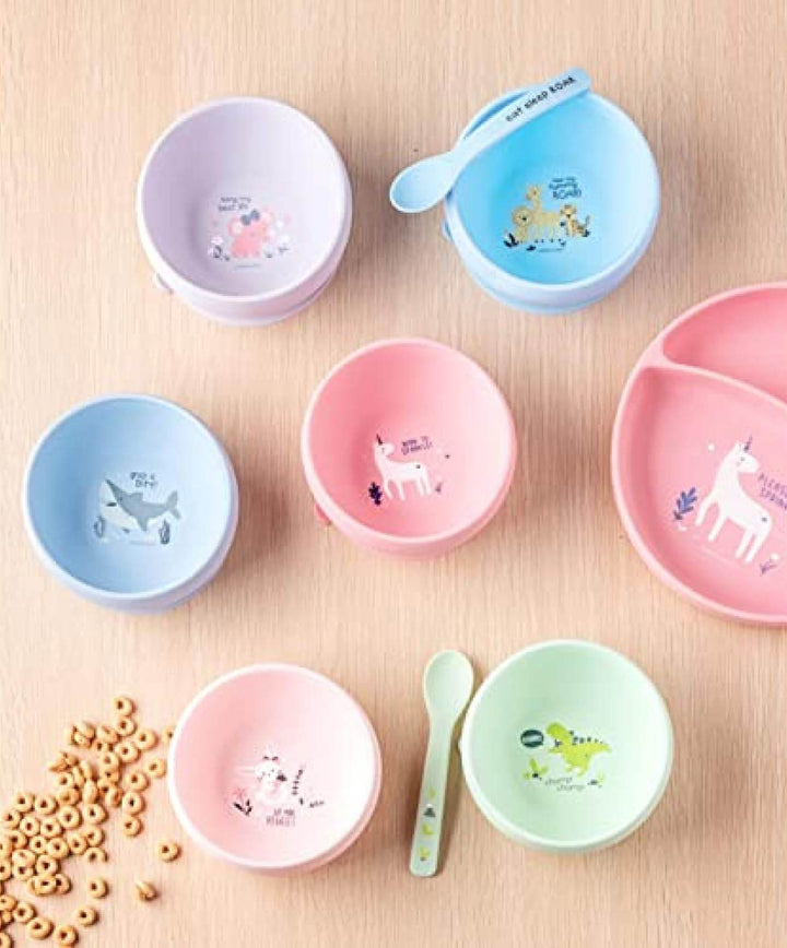 Make mealtime more fun for everyone with these amazing silicone bowls fitted with a suction cup on the bottom to keep the plate exactly where you want it while your kiddo eats *plays with* their meal. Designed with adorable prints in the bottom of the bowl to make finishing your food even more exciting. Made from an ultra soft silicone that is totally dishwasher safe. This bowl is every parent or care giver's dream and coordinates back with the rest of the meal time collection from Stephen Joseph.