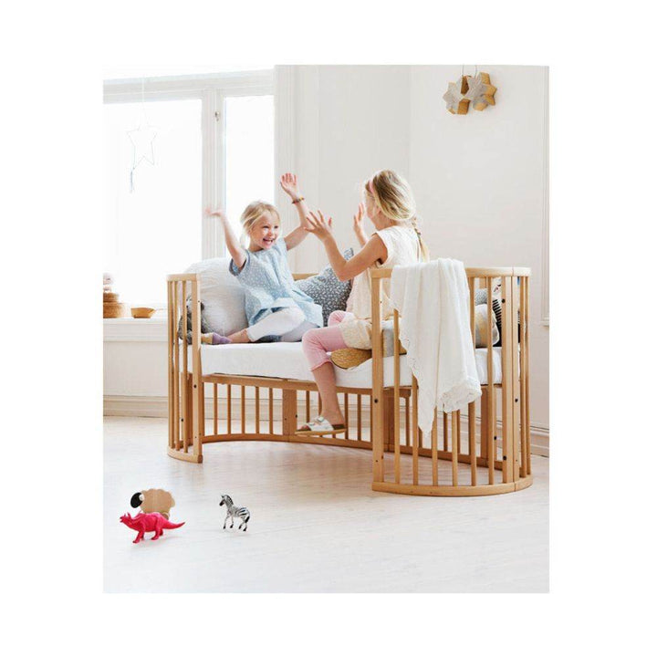 Stokke? Sleepi? is an evolving bed that grows with the child and can be used from birth to 3 years. Its structured with a thoughtful design, which can be used upto approx 10 years of age with additional extension kits. Created in a unique oval shape with soft curves and once the child grows you can be removed from one side of the bed for easy access to them.