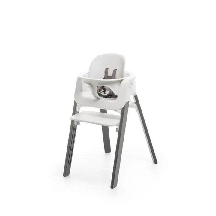 Stokke? Steps? Baby Set, the Stokke? Steps? Chair transforms into a highchair which can be used from about 6 months. Safe and secure, the ergonomically designed Baby Set ensures that your baby is seated correctly. The back plate is adjustable in both height and depth to ensure a perfect custom fit as your child grows. The Stokke? Steps? Baby Set mounts easily onto the Stokke? Steps? Chair, tool-free.