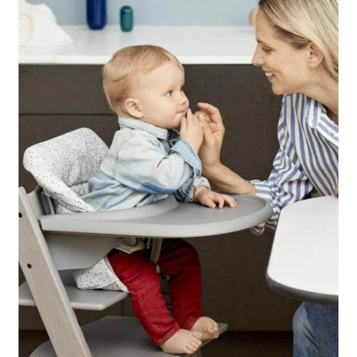 Make your Tripp Trapp chair a high chair for your baby for clean and sophisticated meal times. It's a perfect addition to the Tripp Trapp chair for quick feedings and making the baby a part of your meals and conversations.