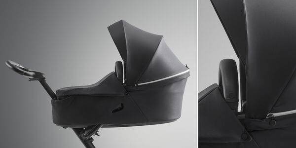Protective & practical - the carry cot gives your newborn a cozy place to lie flat for rest and sleep during your outings together. The carry handle is covered with durable leatherette and doubles as a seat rail. Please note the carry handle comes with your stroller?s?seat and can be used with the carry cot. The hinged carry handle provides easy access to your baby and makes the carry cot easy to carry. ? ?Two roomy, well-placed pockets provide ample storage to keep mommy must-haves at hand, while quick-release buttons make the carry cot simple to detach from the stroller chassis. Also included is a breathable carry cot mattress. Made of Sorona fibers from renewable plant raw materials, it ?s better for the environment. ?