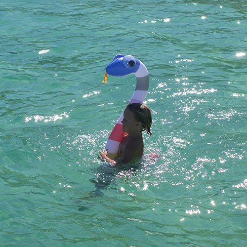 Just add water and bring playtime to life. The Into The Wild Kids Inflatable Noodles are thrilling pool and beach toys designed to capture the imaginations of young children. Made for hands small and big with their easy to handle and lightweight design, perfect for floating with them and using them in games. Big bright eyes with their snake shaped design and multi coloured maxi stripe print will make for endless hours of outdoor fun.