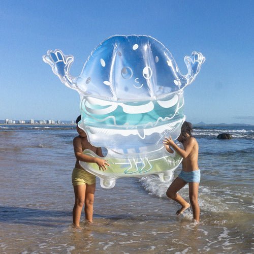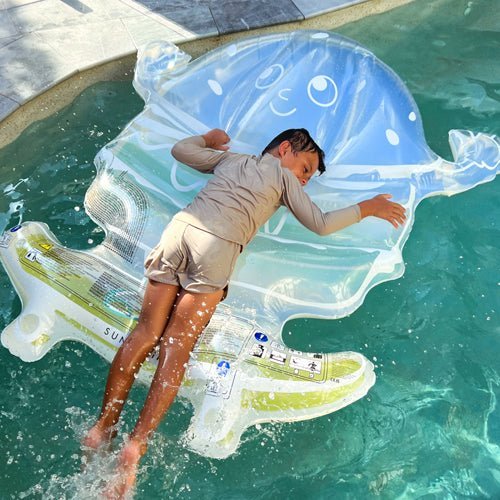 Guarantee youngsters non-stop fun in the sun. The Burger Boy Kids Lie-On Float is playful, unique, and ultra-rad, the perfect companion for adventure-packed days spent poolside and beach hangout sessions. Made for maximum entertainment and relaxation, kids of all ages will love to make a splash with this outrageously cool inflatable. Turn heads and ensure this season is one to remember with its trendy burger shaped design, skater boy graphic, and ocean-inspired hues.