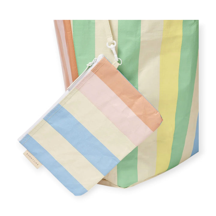 Live your life in the sun with SUNNYLiFE. Get summer ready with the SUNNYLiFE Carryall Bag, made to fit all your beach and pool essentials. Available in a classic stripes print and made up of a sturdy material, this bag will keep its shape whether full or empty. Equipped with cotton webbing handles, detachable zipped pouch and drainage holes at the base for sand or water, the bag is so well designed that you are sure to make it one of your essentials this summer. It is also easy to fold thereby facilitating easy storage once used. Lightwight, durable and waterproof - it's the ultimate beach and outdoor bag!