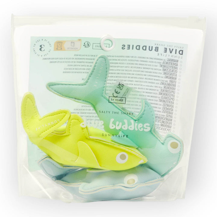SUNNYLiFE Salty the Shark Dive Buddies Aqua Neon Yellow Set of 3