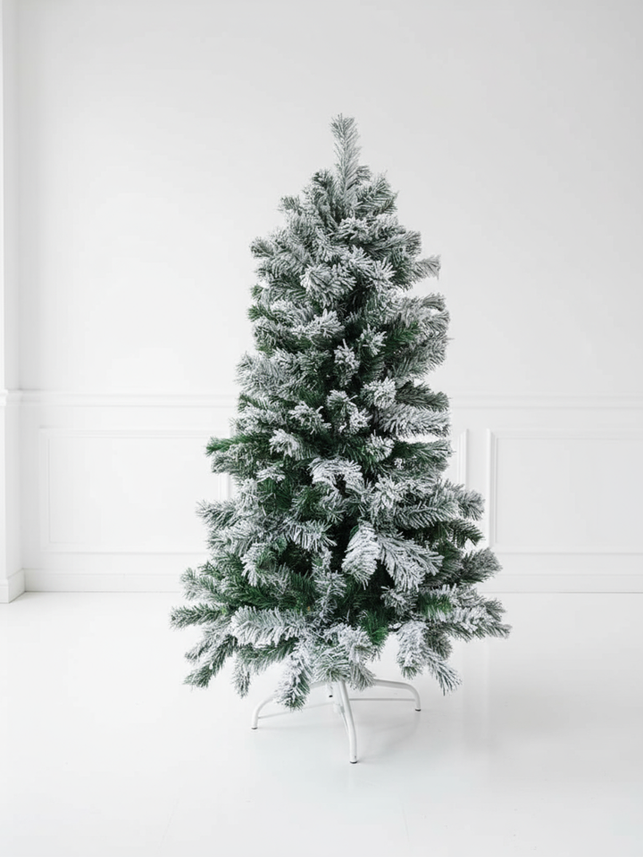 Transform any room into a breathtaking winter scene with the BIANCA christmas tree by SWEN. Standing at a versatile 4-foot height, this tree is generously blanketed in a thick, pristine white flocking, creating the dramatic and serene look of a snow-laden forest. It's the perfect size for adding a statement to apartments, entryways, or as an elegant secondary display. Each branch is completely coated in a dense, high-quality white flocking, delivering the most realistic and visually stunning "fresh snowfall" effect. Despite its manageable height, the tree boasts a full, robust silhouette that provides an excellent canvas for all your cherished ornaments. BIANCA is a beatifully voluminous tree that is made from premium Polythylene (PE) material. It is furnished with a sturdy metal stand for easy installtion and assembly. Simply place the stand provided on the floor and then place one component into the other by means of the central rod. The tree features hinged branches for incredibly easy assembly as well as for folding for storage. The branches quickly open up and fall into place, following which you may open up and orient the leaves in all directions giving it a full blown look ready for you to admire. Create a truly unforgettable, snow-filled holiday moment with this gorgeous, easy-to-manage tree by SWEN.