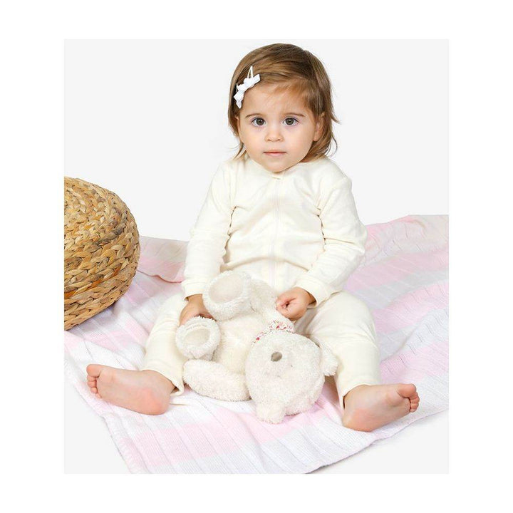 Our all-season zip-up sleepsuit has been delicately designed to keep your little one feeling comfortable all night long, and to make nighttime changing as simple as possible. The zip has a protective zip cover so baby's skin stays safe and fold over cuffs on feet for extra warmth and comfort during the night and can be folded over to let the toes wiggle during the day.