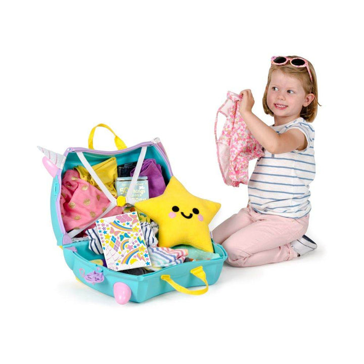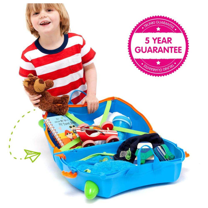 This ride-on suitcase is the perfect choice for your little explorers to venture across the blue sea or through blue skies! Our? Trunki Ride on suitcase is the perfect companion for kids on the go. As well as being the ideal hand luggage choice for kids, our Trunki suitcases are great for storing things at home or taking to sleepovers and staycations. Every Trunki is UK-made with lightweight, durable, easy-clean plastic for ultimate convenience. We are so proud of their quality that every Trunki suitcase is covered with a free 5-year guarantee.