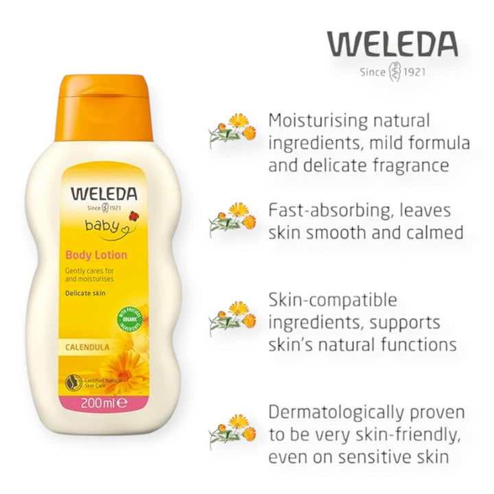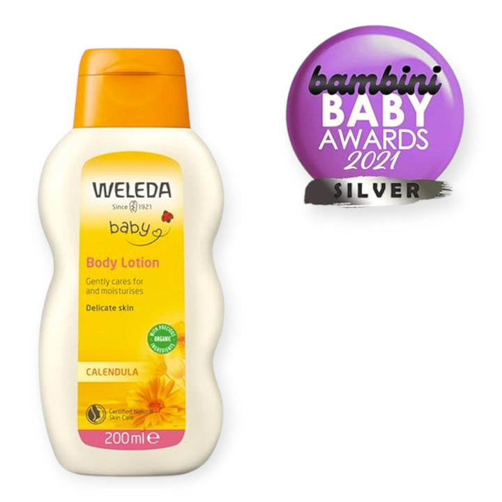 Gently care for delicate skin with this light baby lotion. A mild and light milk with sweet almond, sesame oils and soothing extracts of gentle calendula and chamomile. Enriched with perfectly compatible lipids in a lotion which supports skin’s moisture balance. Baby’s skin is left velvety-soft and smelling like a naturally clean baby, making everyone smile!