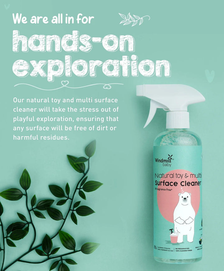 Windmill baby Natural Toy and Multi Surface Cleaner is 100% fragrance free, 100% chemical free, certified natural, and super easy to use. Clean your baby's or pet's toys, furniture, high tables, chairs, teethers, and anything they could accidentally put in their mouths. Keep them away from germs and harmful cleaning chemicals, so they can explore the world stress free!