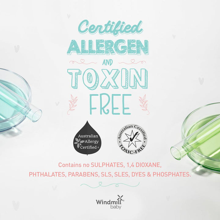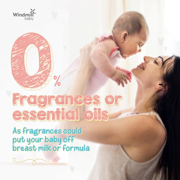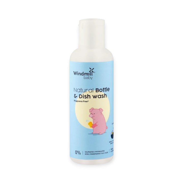 Windmill baby Natural Baby Bottle Cleaning Liquid foams nicely and cuts through grime and solidified milk to leave your bottles and pump parts germ free and odour free. It is specially formulated to remove germs, viruses and milk odors while being gentle on your hands and non irritant for your baby. Made with loving ingredients that are tough on dirt and kind on tongues. Oh, and it doubles up as dish wash too so no more dirty plates, cups, and bowls - ever!