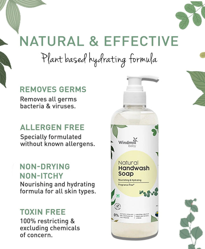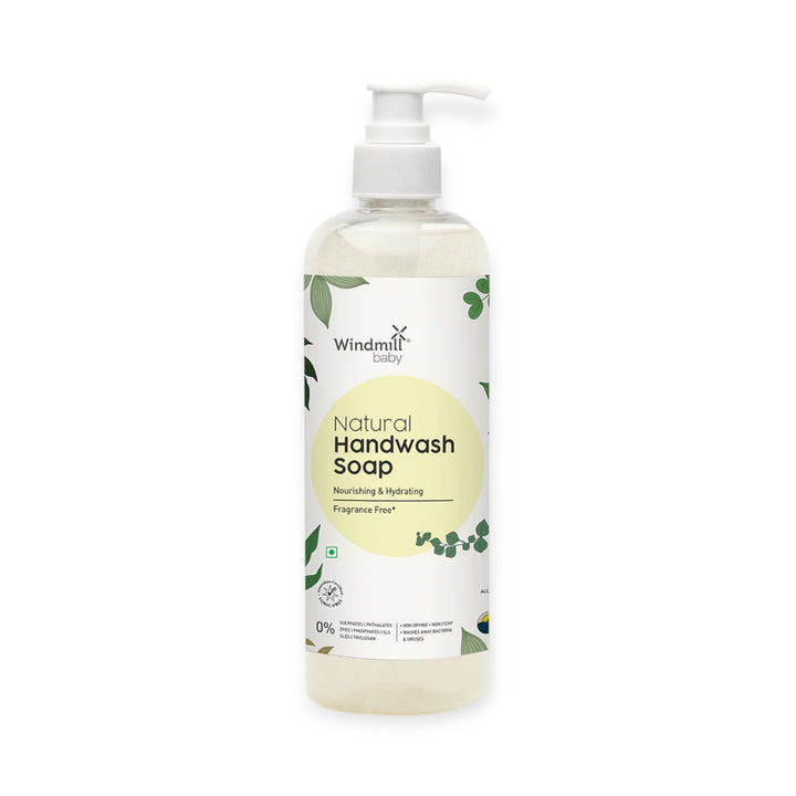 Windmill baby Natural Fragrance Free Handwash is an advanced, natural coconut oil based formula, designed to keep your hands soft and supple. It removes 99.9% germs and viruses while being gentle on your and your baby's beautiful skin. It’s non drying, non itchy and works for all skin types.