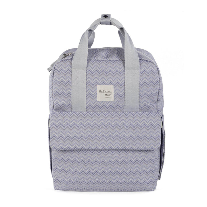 A modern and sportive, grey backpack diaper changing bag from the Zigzag collection by Walking Mum.